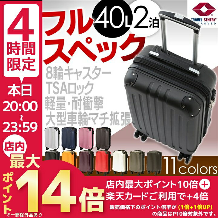 価格: 3,980円 レビュー評価:4.58 レビュー数:3021 大きいサイズも安い!こちらからどうぞ! SSサイズ33ℓ(40ℓ) (約)1?3泊(機内持ち込みサイズ) Sサイズ46ℓ(55ℓ) (約)3?5泊 Mサイズ63ℓ (約)5?7泊 Lサイズ78ℓ (約)5?7泊(受託手荷物無料サイズ) ※カラーバリエーションはサイズによって異なりますのでご注意ください。 品番 5082-48 本体サイズ 48×33×24(+5)cm 全体サイズ 54×36×24(+5)cm 容量(約) 33(40)L 重量(約) 2.9Kg 宿泊目安 1?3日 キャスター 360度自在4輪キャスター 素材 ABS樹脂 キャリーバー 段階調整キャリーバー 当サイトでは複数店舗で在庫を共有しており、システムで在庫調整を行っておりますが、タイミングにより在庫にずれが生じることがあります。 在庫数更新が間に合 (更新日時:2019/03/05 19:44) Supported by 楽天ウェブサービス |
